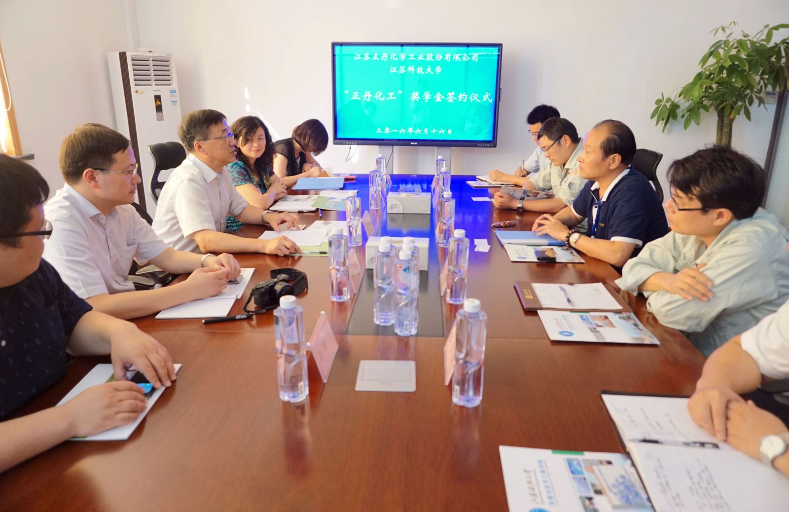 6月16日下午,江苏科技大学“AGGAME·(中国区)娱乐化工奖学金”签约仪式在公司举行。公司董事长曹正国,江科大副校长李茜,环境与化学工程学院院长兼党委书记袁爱华教授,对外合作处副处长郭峰,环化学院党委副书记杨亚洲,绿色化工与环境工程研究所副所长陆鸿飞教授出席了奖学金签约仪式。参加签约仪式的还有公司人力资源部与技术部相关负责人。